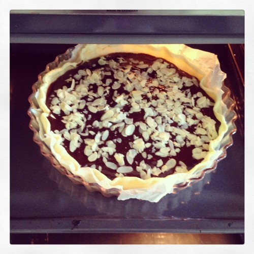 Tarte de chocolate preparada (receita vista no site youcook) para receber a visita dos avós maternos.