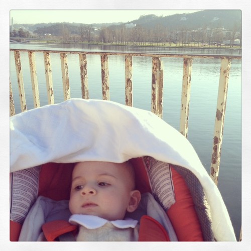 Sábado não nos trouxe o mesmo sol. Umas nuvens altas marcaram todo o dia e foram-se adensando, à medida que o dia ficava cada vez mais frio. Ainda assim arriscámos num passeio ao parque, onde demos pão aos patos, acompanhados pelos avós.