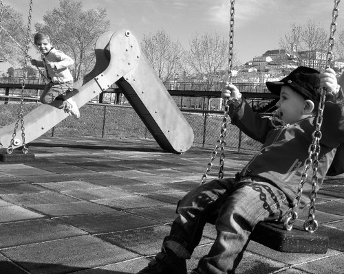 Adoras andar de baloiço (o papá a segurar) e de escorrega (sozinho...).