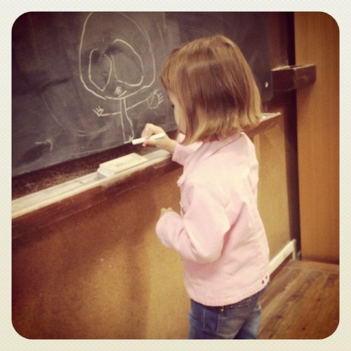 8.30, 37,5º. Eu tinha exame às 11. Só tinha um aluno porque era uma reposição do exame de segunda. Levei-a comigo. Foi a loucura. Levei o leitor de dvd e ficou entretida uma hora mais ou menos. Entretanto, quis desenhar no quadro... Lá desenhou. Mas portou-se muito bem, esteve quase sempre caladinha e falou sempre baixinho.